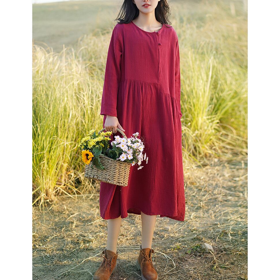 綿100%、ダブルコットン素材でやわらかな風合いのルーズワンピース。通気性にも優れています。